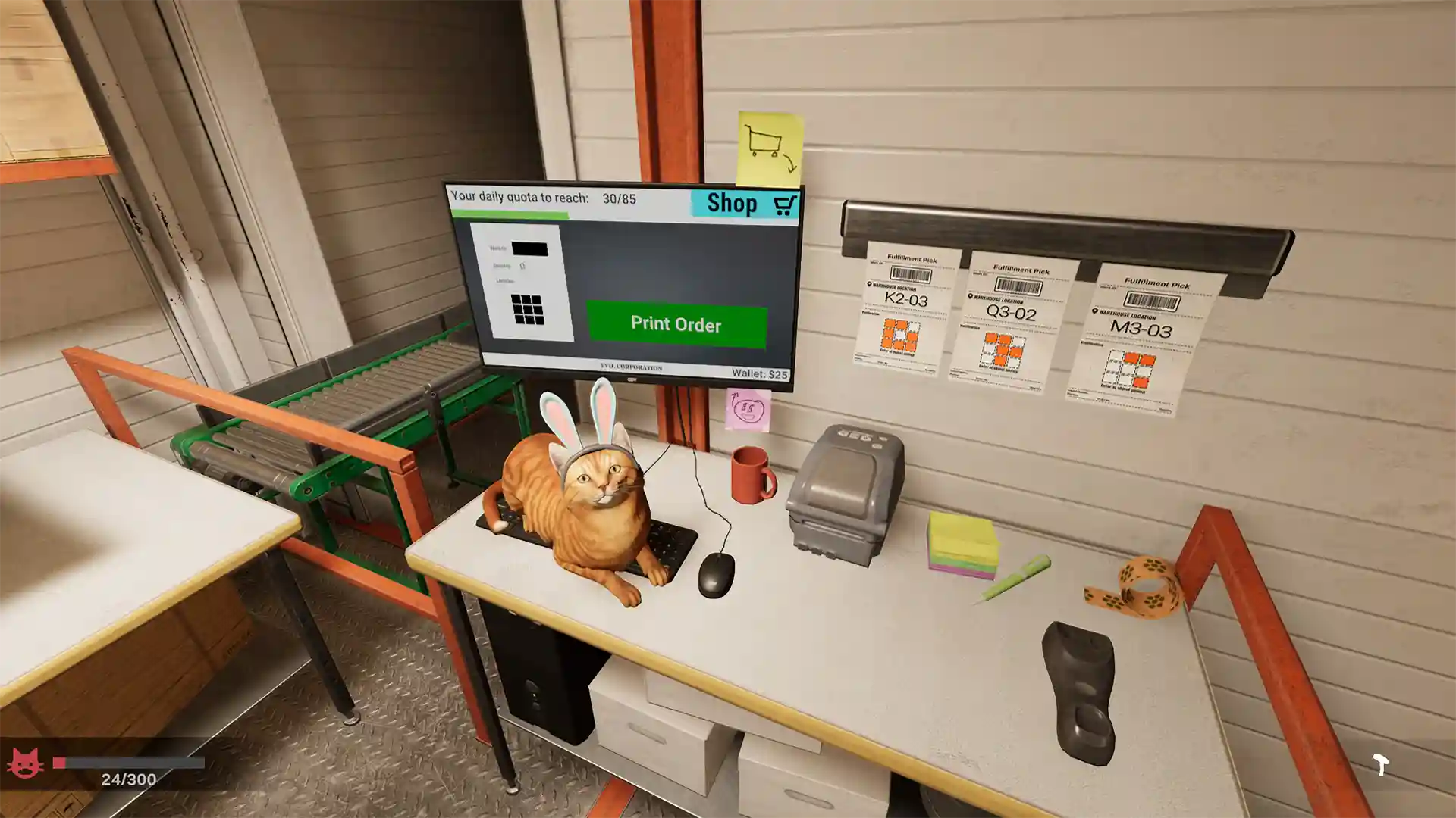 订单处理是游戏的核心操作,也是玩家的生存前提。玩家需要在办公室的电脑上接收每日订单,订单中会明确标注所需物品的名称与存放位置,随后需携带手电筒,穿梭于昏暗的仓库中,寻找并收集这些物品,带回办公室后进行打包、发货,直至完成当日的订单配额,才能结束当天的夜班,获得相应的报酬。