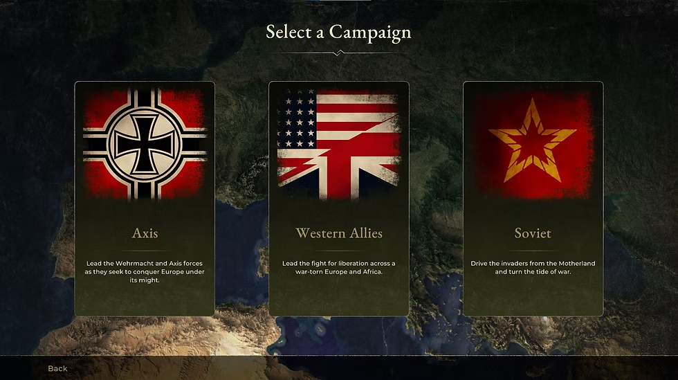 背景故事紧扣二战历史脉络,聚焦1939年至1945年的欧洲与北非战场,涵盖了二战期间的诸多经典战役场景,从东线的冰封之地到北非的严酷沙漠,从雷马根大桥的突袭战到克里米亚战役的拉锯战,全方位还原了这场全球性战争的残酷与壮烈。游戏摒弃了冗长的线性叙事,采用轻量化、碎片化的叙事方式,通过三大阵营的独立战役,分别从不同视角展现二战的全貌——轴心国阵营聚焦巴巴罗萨行动、克里特岛空降作战等战役,展现其初期的凌厉攻势与后期的颓势;西方盟军阵营以反击作战为核心,重现诺曼底登陆、雷马根大桥突破等经典战役,书写反法西斯的反击之路;苏联阵营则围绕卫国战争展开,聚焦克里米亚等战场,展现苏军的坚韧与牺牲。